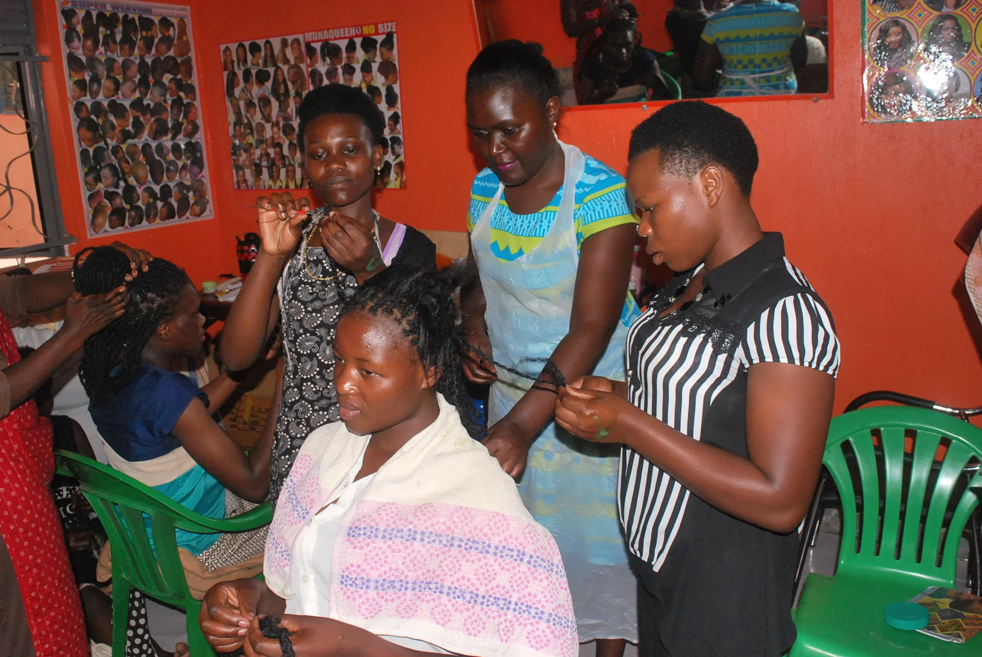 Hairdressing is one of the technical skills taught to the girls in Katanga under the Girl Care Program